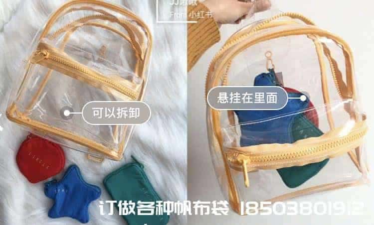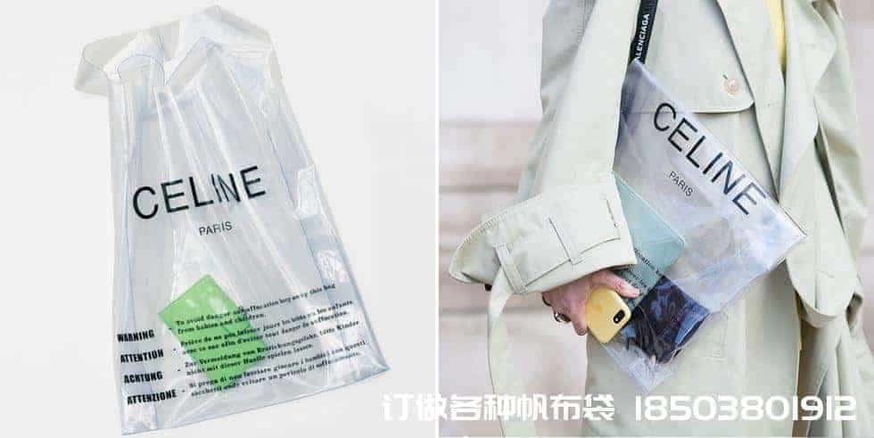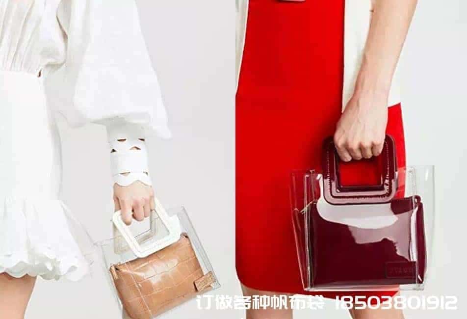 大米袋帆布袋制作電話/微信:15838231350大家晚上好!今天隊長跟大家分享一個在時尚圈兜兜轉轉,重新躍入大眾視野的經典元素,那就是透明PVC!從鞋子、包包再到服裝,從Celvin Klein到Chanel,PVC以其環保、前衛等特性,被各大品牌所寵愛。