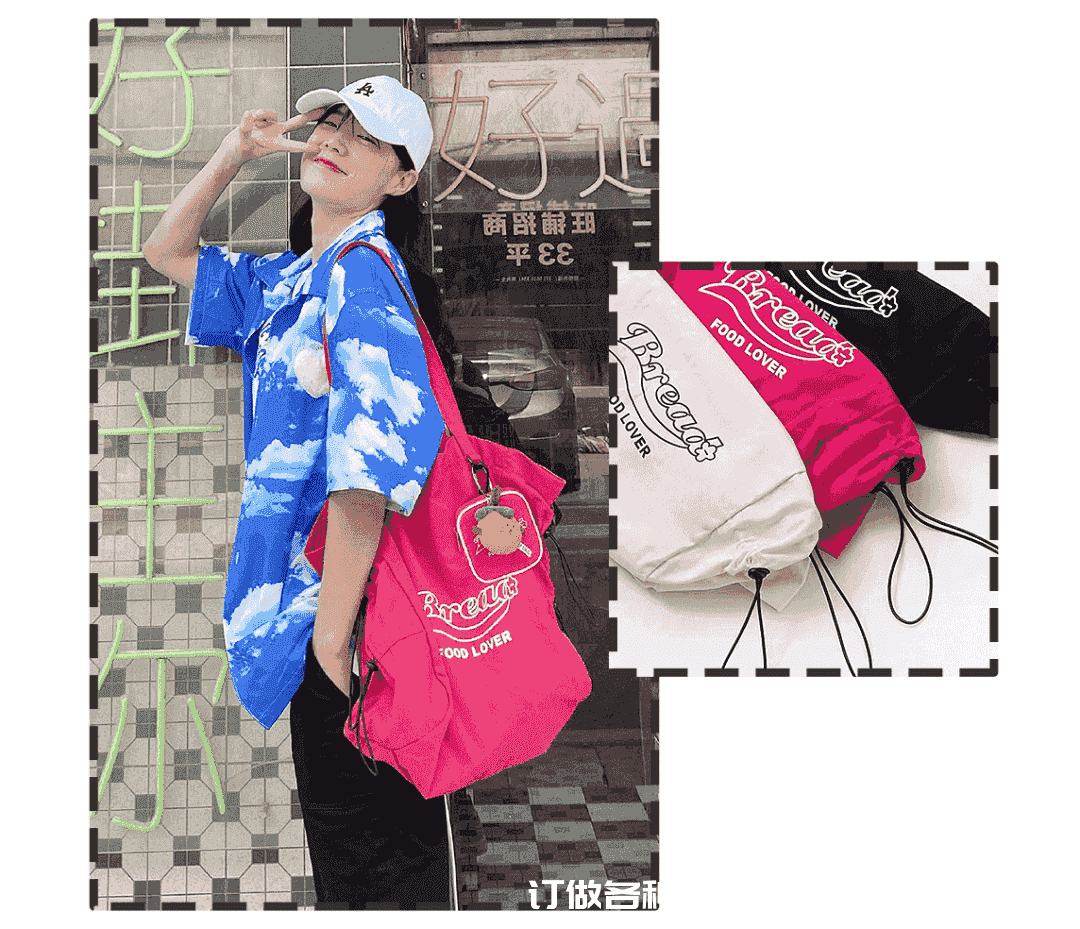 覺得顏色不夠亮麗的可以看看介款,同樣是抽繩設(shè)計,背著出街吸睛力MAX!