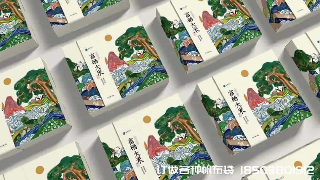 原標(biāo)題:束口袋帆布袋制作電話/微信:15838231350浮世繪風(fēng)格的大米包裝設(shè)計(jì),畫風(fēng)好棒!