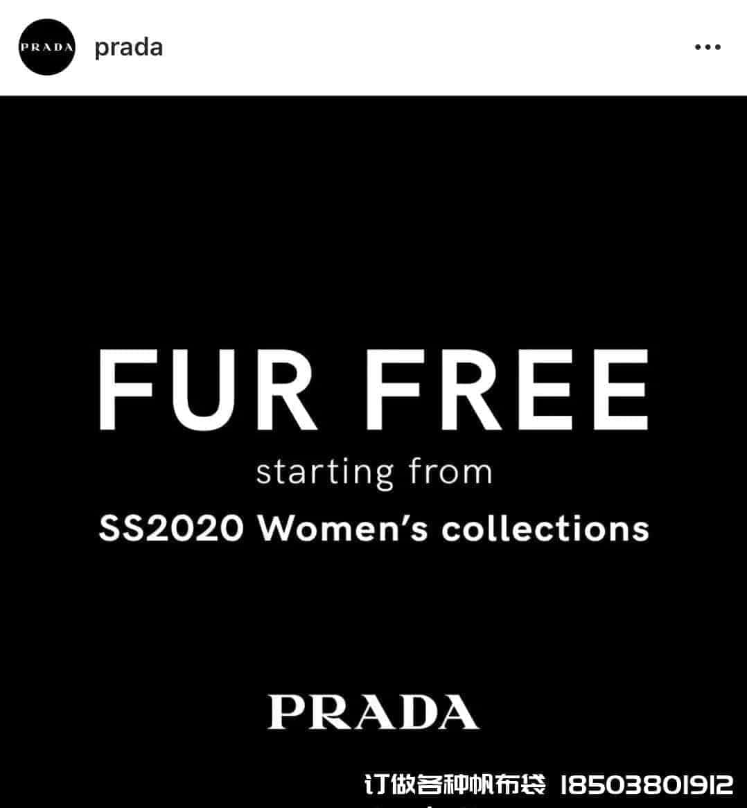 上個月,Prada宣布從2020棉布袋帆布袋制作電話/微信:15838231350年春夏女裝系列起就不再使用動物皮草,國際零皮草聯盟又添一員大將。 此