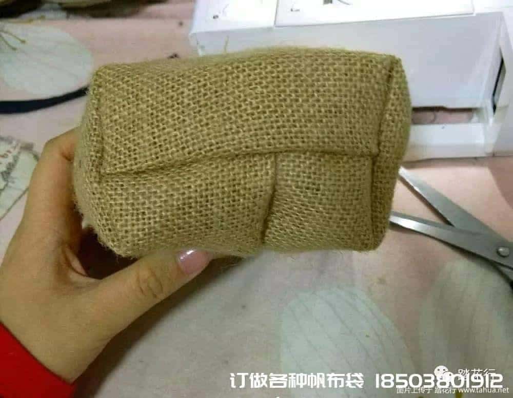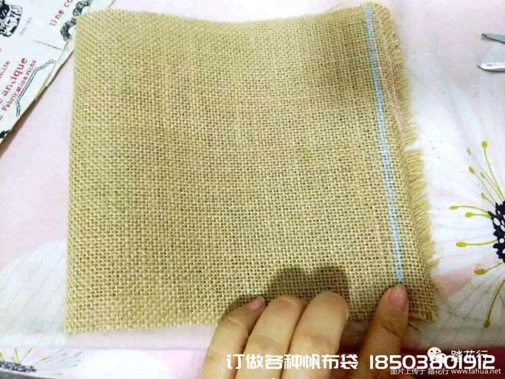 第二步:裁剪。考慮到承重問題,做的比較小,成品口徑能放15厘米口徑的花盆進去。太大的話會壓變形,失去美觀。帆布禮品袋帆布袋制作電話/微信:15838231350把麻布和帆布都裁剪成大小一致的長方形,長40厘米,寬18厘米。如果不喜歡這個尺寸,可以自由調整一下。但是切記,里和表的尺寸一定要一致,或者里層帆布尺寸可以稍小一點點,不要超過一厘米。