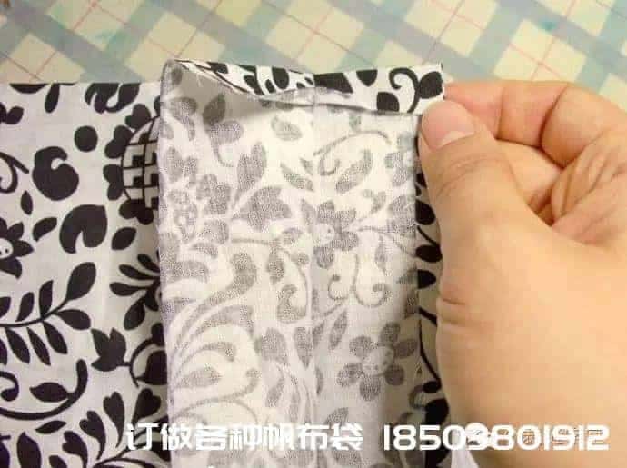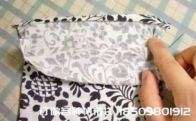 上兩步折好后,再將橫向的布邊對折到開口處。