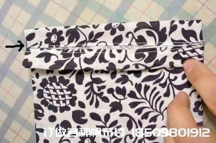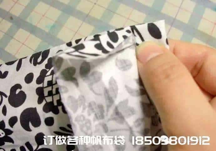 x將包口處的布邊翻下一個縫頭,用指甲壓平。兩邊都要做
