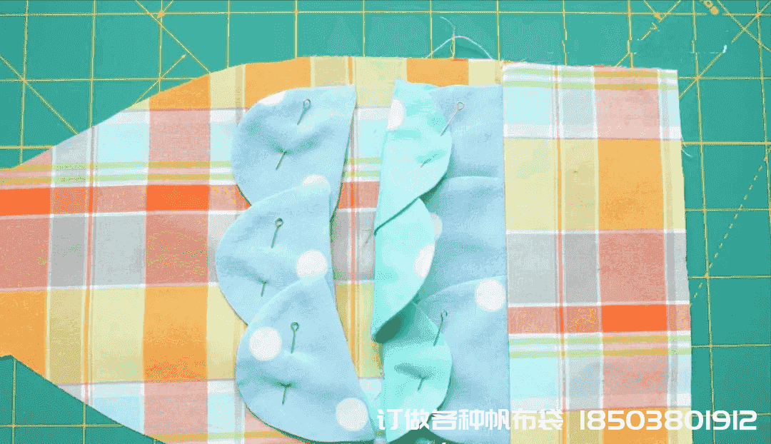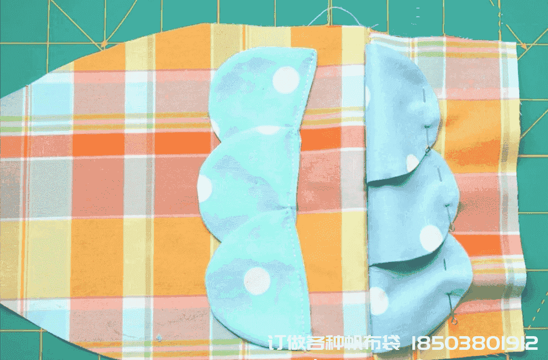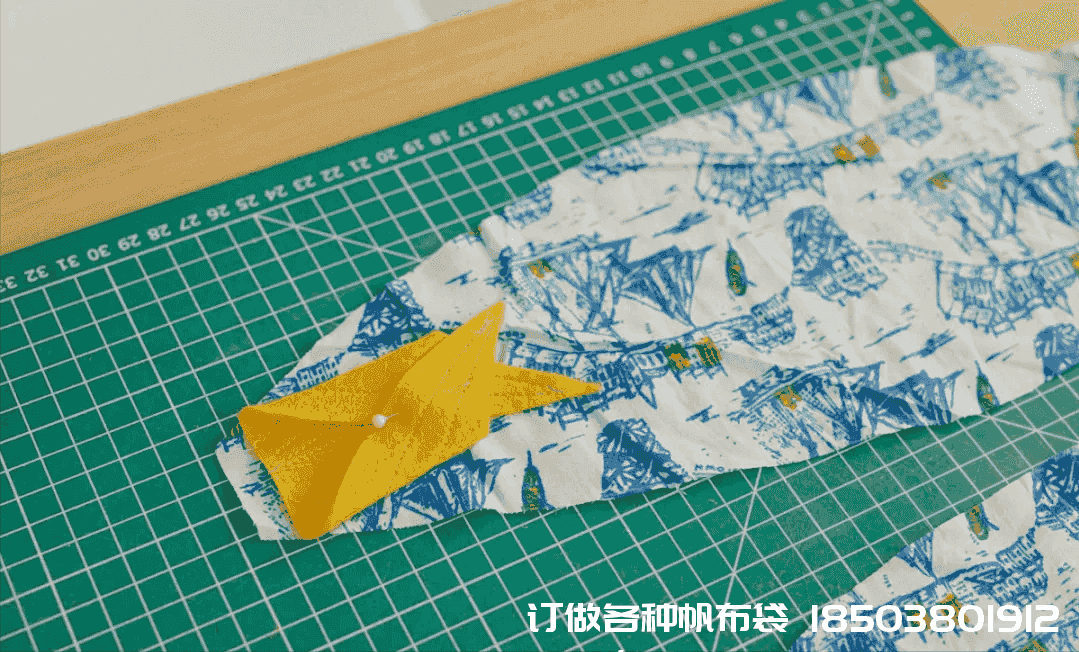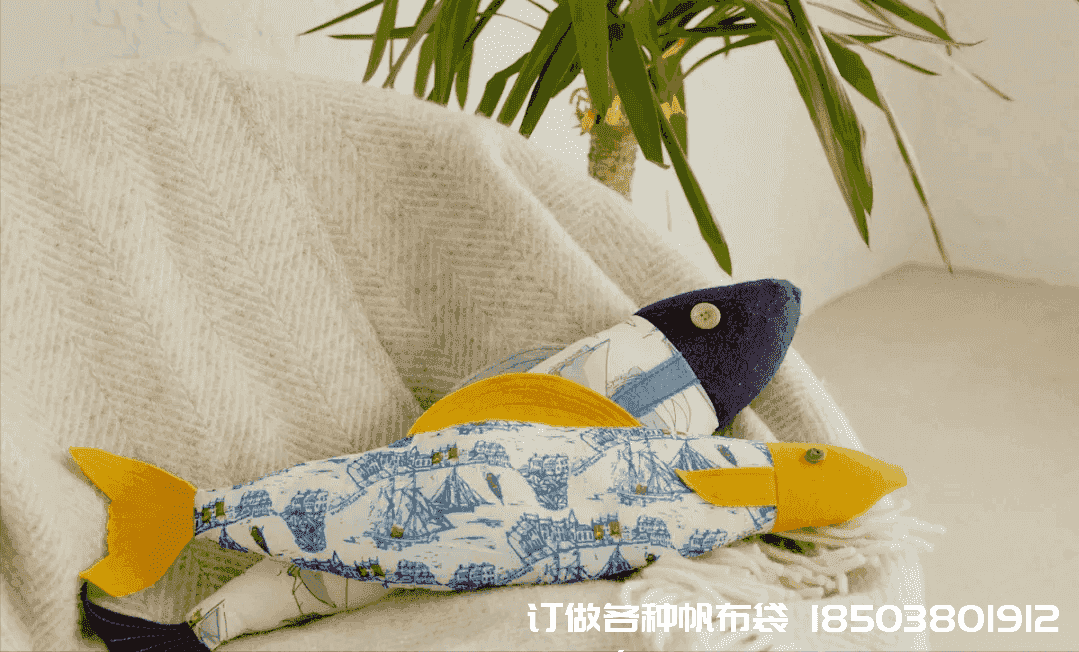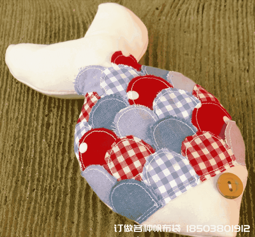 帆布袋制作電話/微信:15838231350把圖紙放在布上畫出,剪兩塊布做魚身,魚頭。