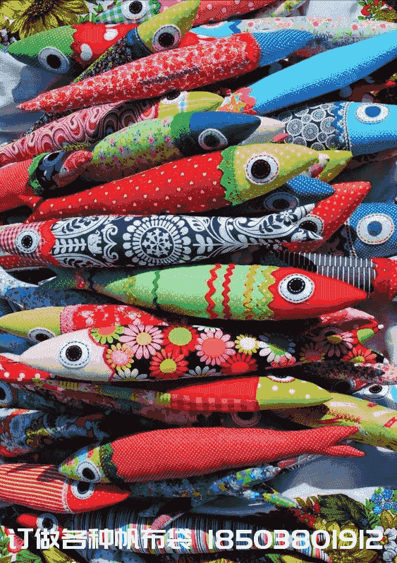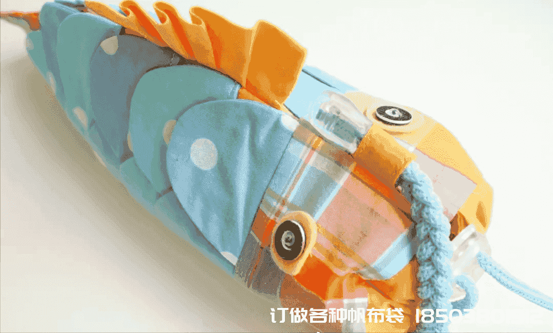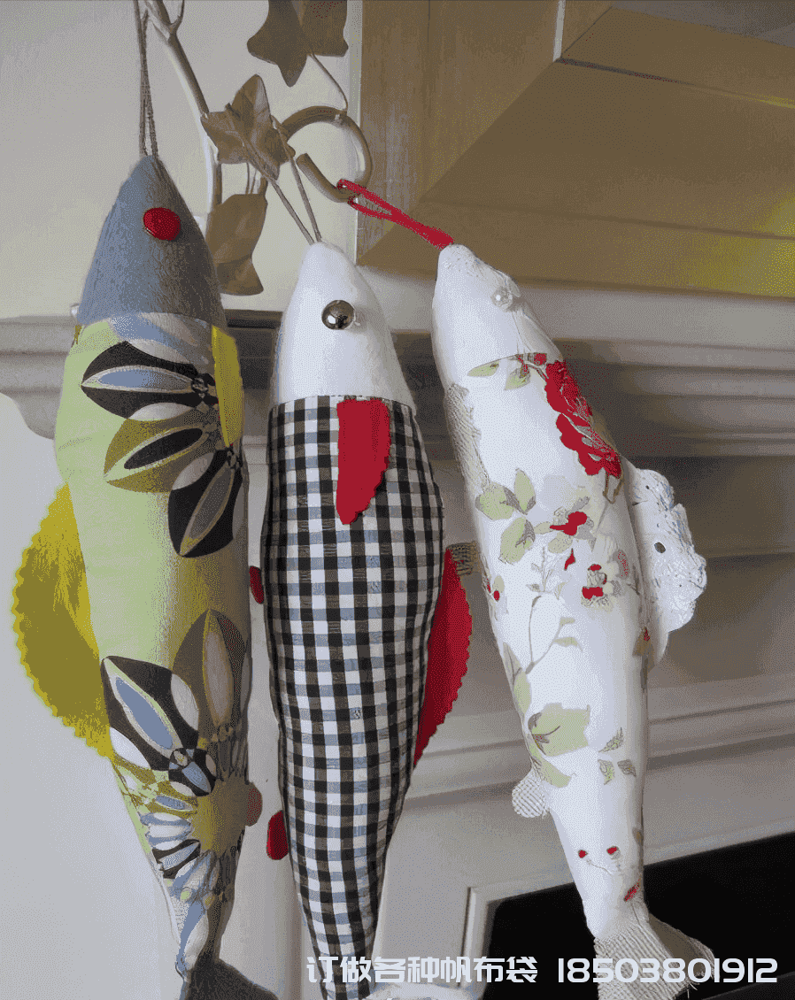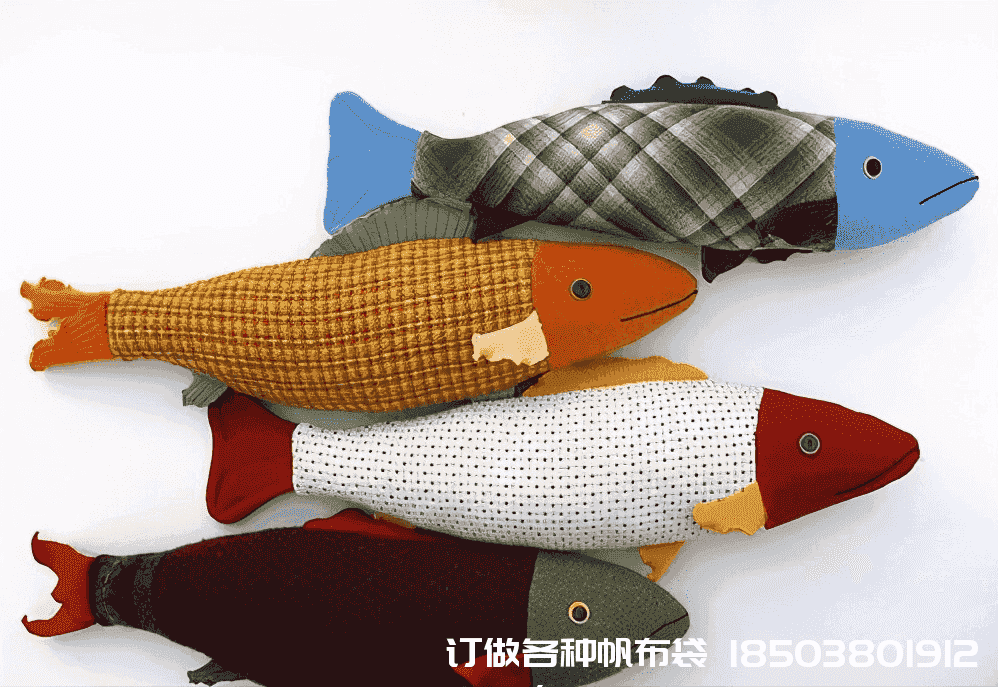 然后把里袋和魚身翻回正面,把里袋套進(jìn)去魚身,魚嘴處穿上繩子就完成了。