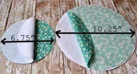 分別準備兩塊布,兩塊做成小圓,另外兩塊做成大圓。至于做多大,視乎你想把束口袋做成多大而定。自己喜歡就好。就是兩個圓的大小不要相差太大。