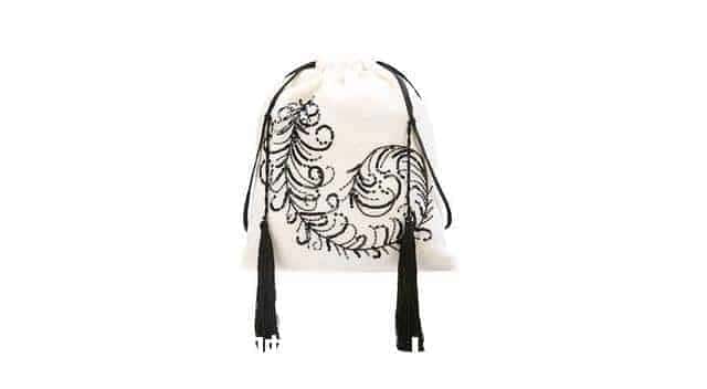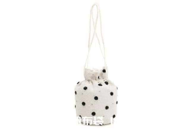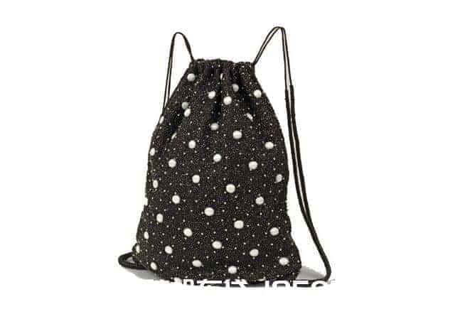 Ganni的束口袋在造型上算是基本款,松軟的袋身沒有多余的設(shè)計,帶子也是簡單的兩條繩,每只束口袋上都鑲嵌著層層釘珠,所以它的外觀依然很是亮眼。適合不喜張揚浮夸的女生。