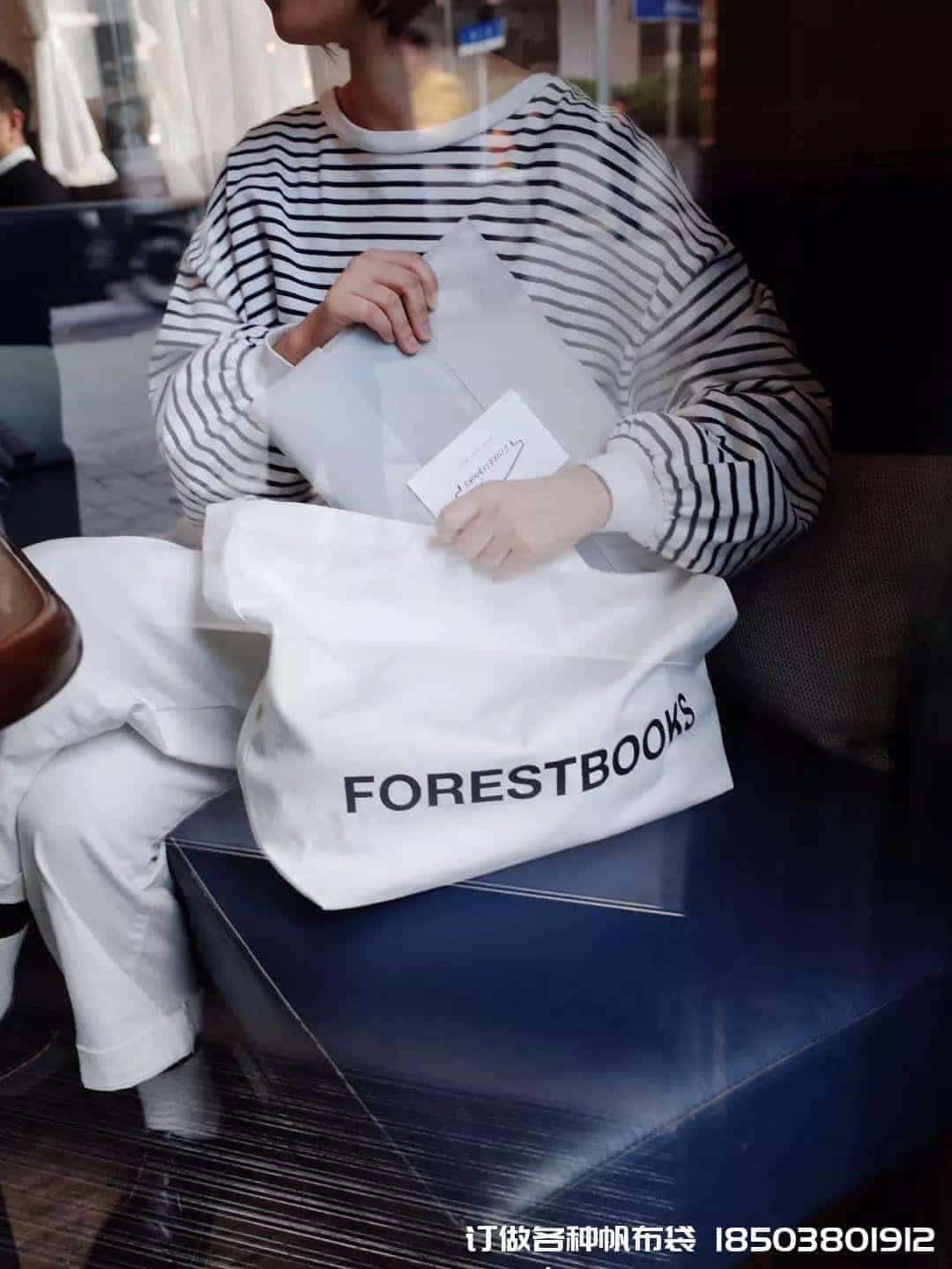 FORESTBOOKS是蘇州的一家書店,帆布包經過半年多不同工廠反復打樣最終確定下來,前兩張圖片中的模特是店里請的插畫師朋友,后一張圖則由“本冊選書”的創辦人、forestbooks書店的主理人儲海飛本人出境。