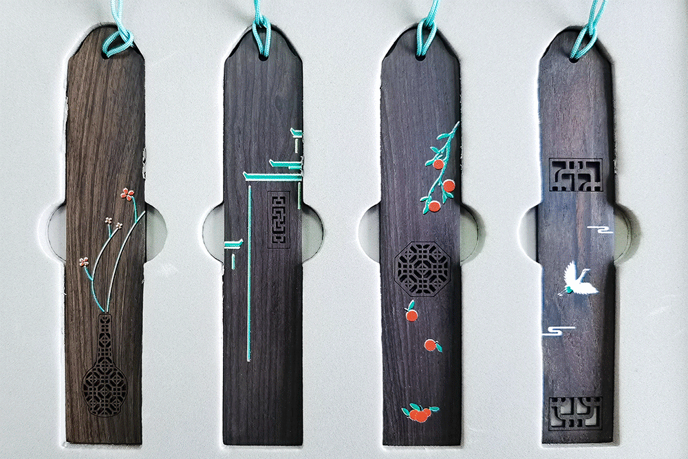古韻慈溪紅木書簽使用鏤空工藝,古色古香中具有穿透感。