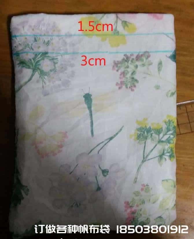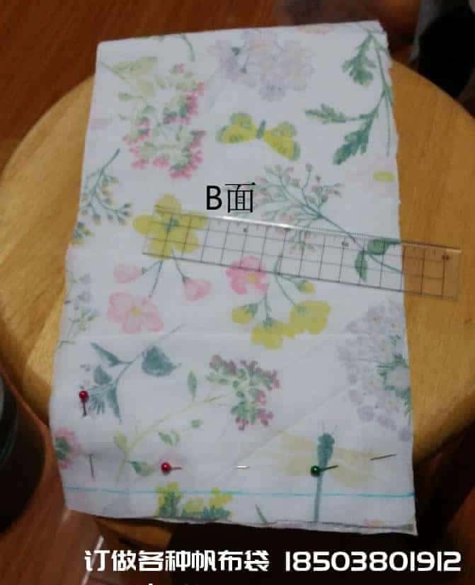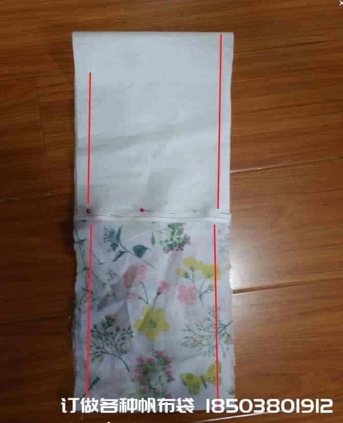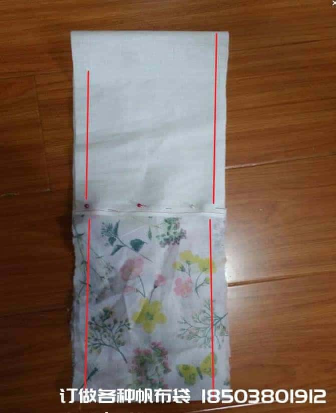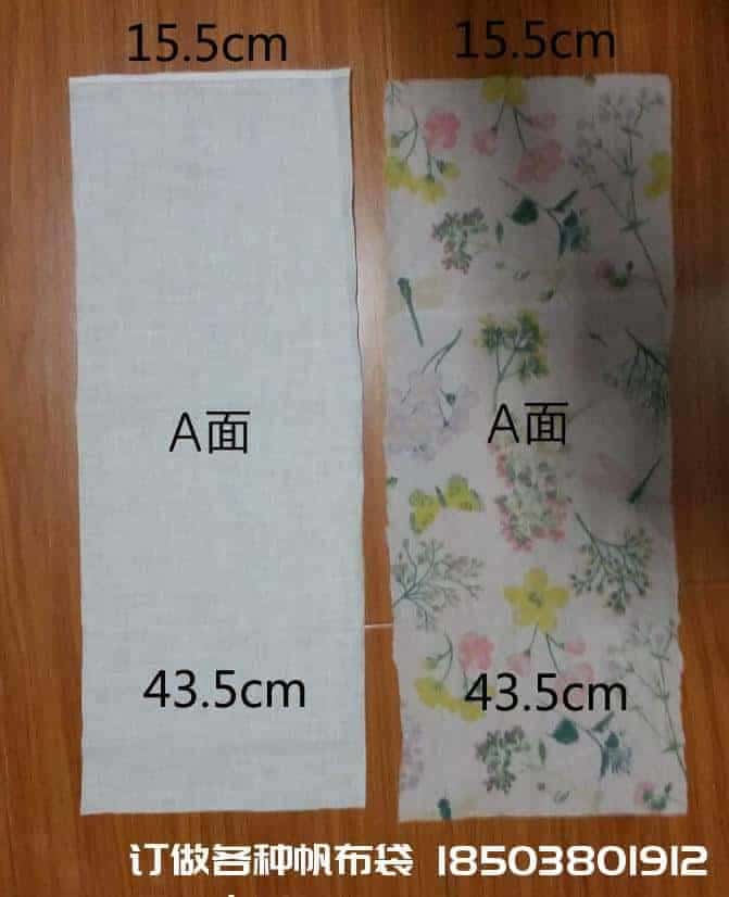 ①準(zhǔn)備里布和表布,如圖所示(參考尺寸寬15.5cm 長43.5cm)