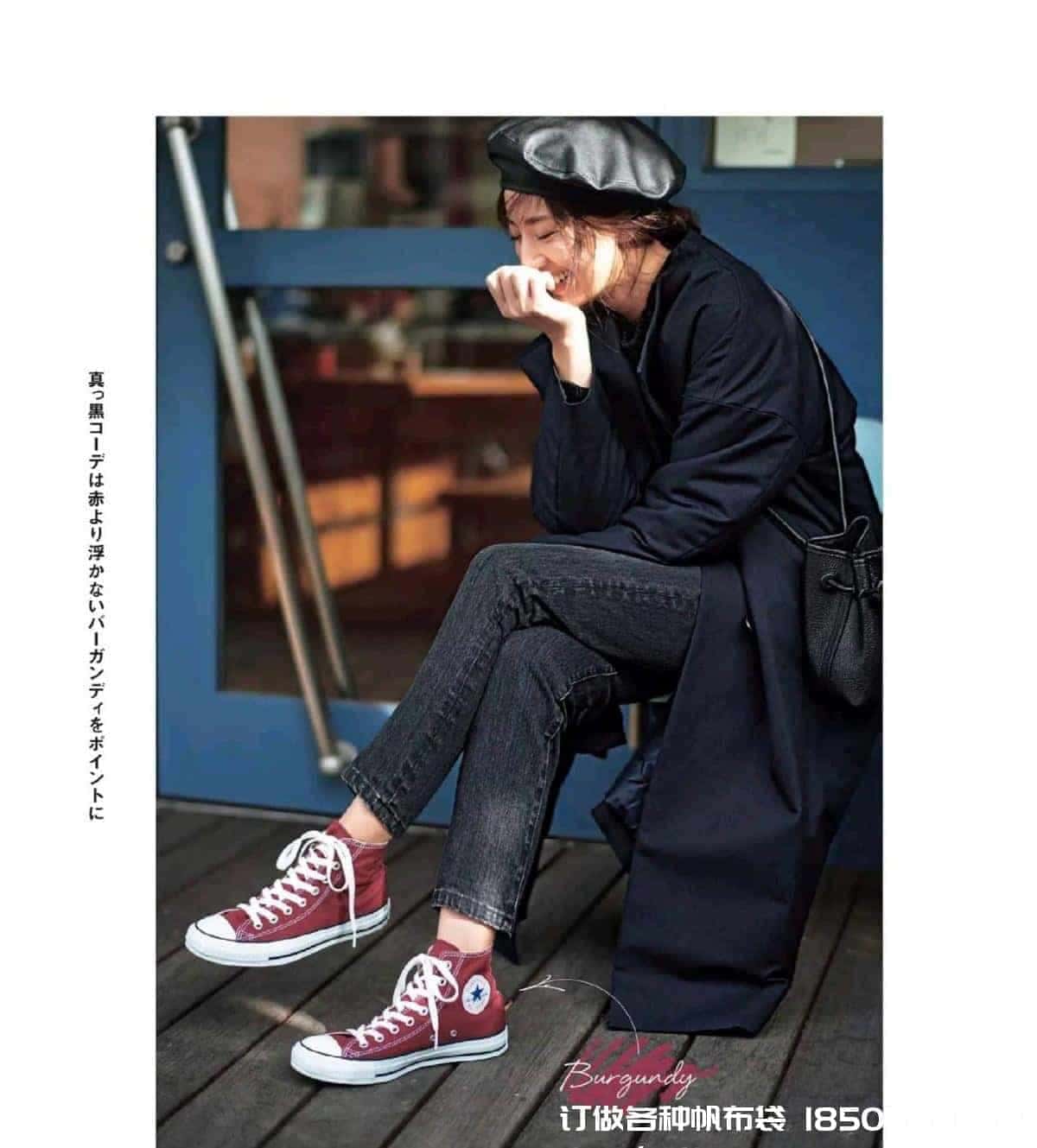 在這么多的帆布鞋的色彩之中,不要只是局限在白色這一種之內,因為它挑戰起來沒有過多的難度,穿起來也不夠顯眼。如果想要提升一下亮眼的效果,可以打造出明暗配色的作用,利用一款酒紅色的帆布鞋,加入到穿搭之中,展現出一種活力的感覺和有點熱情的氛圍。