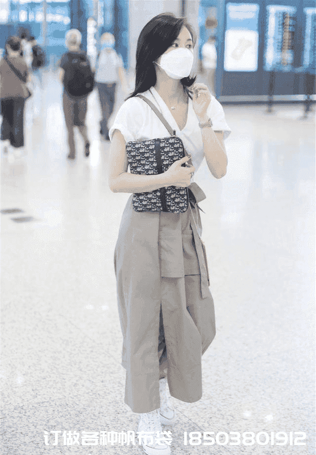 王子文身穿V領款T恤,V領顯得王子文更加消瘦嬌小,惹人憐惜的同帆布袋廠家電話/微信:15838231350時也帶著一絲素雅端莊。袖子的翻口設計為整體純白色無印花的白T增添了一絲設計感,讓整件衣服沒有那么單調枯燥,簡潔大方不出錯的款式也非常適合通勤。