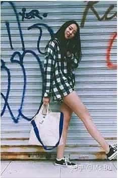 就算是在世界潮流之都紐約,帆布包也有一席之地。Alexa Chung出街時,簡單的黑色背帶裙,配上白色帆布包,紅唇和包包圖案相互呼應,黑白之中一下有了亮點,也將less is more演繹的淋漓盡致。