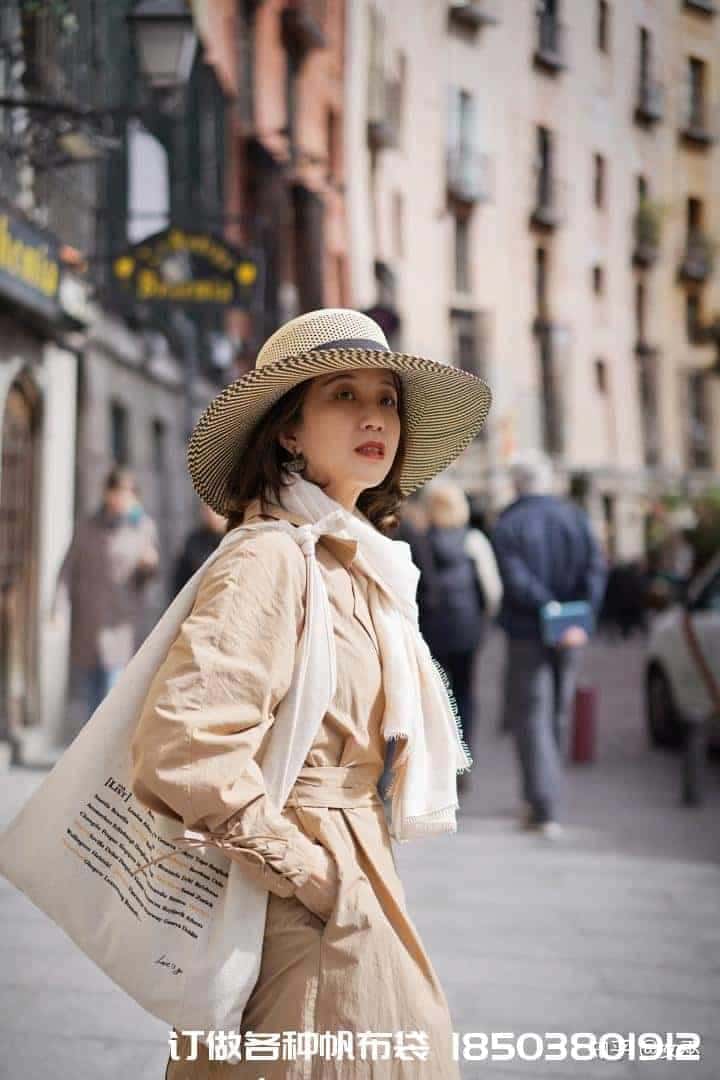 這是一張我在斯里蘭卡旅行途中拍的照片,棉麻質地的帆布袋廠家訂做 無紡布袋訂做廠家電話/微信:15838231350長袖格子連衣裙,手拎帆布包。簡約的漫畫風格黑白人像圖案,活潑的字體,俏皮的表達著“Look What Look”,一張A4紙的大小,但足以滿足出行的需求。