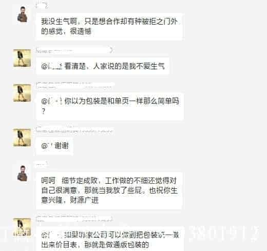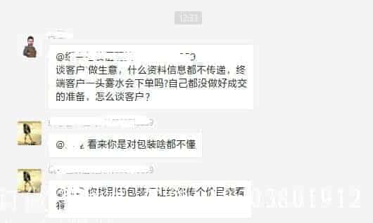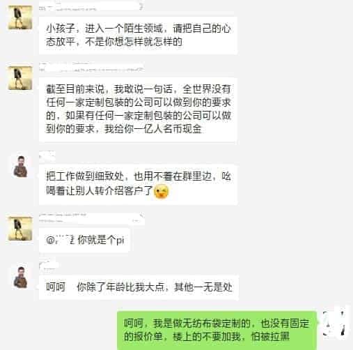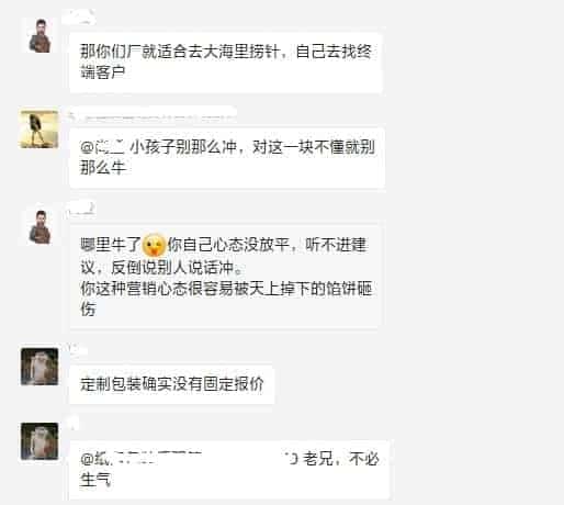 然后,這個紙箱廠就把截圖發到了群里,并@了這個剛開廣告店的,于是,群里就熱鬧了。
