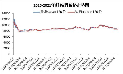 如圖所示,近期PP纖維料價格自3月份以來一路下調,以高溶纖維天津市場S2040和沈陽H39S-2為例價格從3月初的10000元/噸下降至4月25日的8600元/噸,下跌1400元/噸,價格下跌原因除期貨影響外,其次主要受下游開工影響。